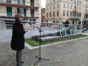 Στεφάνια κατέθεσαν ο Περιφερειάρχης Ιονίων Νήσων Θεόδωρος Γαλιατσάτος, ο βουλευτής Κώστας Παυλίδης, η Αντιπεριφερειάρχης ΠΕ Κέρκυρας Νικολέττα Πανδή, ο εκπρόσωπος του Δήμου Κέρκυρας αντιδήμαρχος Γιώργος – Ηλίας Παντελιός και ο Περιφερειακός Δ/ντης Εκπαίδευσης Κώστας Γκούσης.