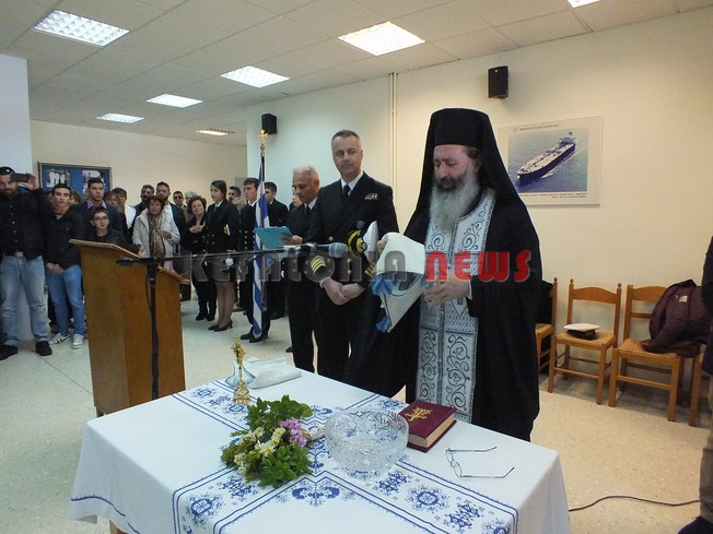 Τελετή Υποδοχής των Νέων Σπουδαστών Εκπαιδευτικού Έτους 2015 – 2016 πραγματοποιήθηκε σήμερα στις εγκαταστάσεις της Ακαδημίας Εμπορικού Ναυτικού. Μια εκδήλωση συγκινητική με ομιλίες και παραινέσεις προς τους νέους σπουδαστές. Ευλόγησε ο νέος Μητροπολίτης Δημήτριος, ενώ χαιρέτησαν εκ μέρους της Βουλευτή ο κ. Βαρουχάς, ο Αντιπεριφερειάρχης κ. Π. Δρακουλόγκωνας, εκ μέρους του Δημάρχου ο κ. Ευαγ. Κεκάτος, από μέρους του Ιδρύματος Βεργωτή ο κ.  Άγ. Μπενετάτος και  Θανάσης Μουίκης. Χαιρέτησαν επίσης και από Ίδρυμα Ευγενίδου. Βραβεύτηκε ο Μητροπολίτης κ. Δημήτριος, ο αντιπεριφερειάρχης, ο Ευαγ. Κεκάτος, . Το Ίδρυμα Βεργωτή και το Ευγενίδειο.  Στην συνέχεια υπήρξε γεύμα στο Διοικητήριο.