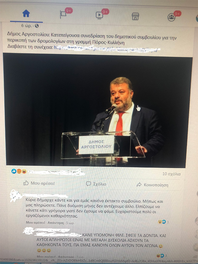 Τα παραπάνω είναι ερωτήματα που έθεσε ο ίδιος ο κ. Γαβριελάτος προς εμένα για να δικαιολογήσει τις απειλές προς τους πολίτες του Ληξουρίου προκειμένου να εκβιάσει το Δήμο Ληξουρίου και να εισπράξει χρήματα που του χρώσταγε ο Δήμος. Τελικά τα εισέπραξε και οι εργαζόμενοι εξακολουθούν και μένουν απλήρωτοι από το Μάρτιο και απ΄’ ότι φαίνεται όχι μόνο στο Ληξούρι… Δηλαδή, αυτούς που εκθείαζε σε προηγούμενο δημοσίευμά του για το σημαντικό κοινωνικό τους έργο φροντίζει να τους επιβραβεύσει για τη προσφορά τους αφήνοντάς τους απλήρωτους. Οι εργαζόμενοι ζητάνε ακόμα και από το Δήμαρχο Αργοστολίου, να κάνει ένα έκτακτο Δημοτικό Συμβούλιο μπας και αποφασίσουν να τους πληρώσουν γιατί όπως οι ίδιοι λένε δεν έχουν να φάνε!!!