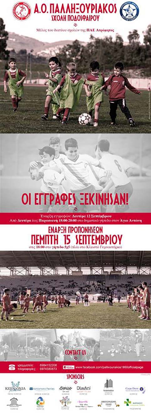 Τη Δευτέρα 12 Σεπτεμβρίου ξεκινούν οι εγγραφές για τα τμήματα υποδομών της ομάδας μας. Οι εγγραφές θα πραγματοποιούνται καθημερινά (Δευτέρα-Παρασκευή) κατά τις ώρες 18:00-20:00 στο γήπεδο του Αγ. Αντώνη.