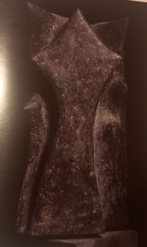 Στο έργο του «Γαλάζια Φλόγα –Άβυθος», οι Θριαμβικοί Μαστοί πάντα παρόντες, νομίζεις ότι βλέπεις λουλούδια και τελικά αντιλαμβάνεσαι ότι μάλλον πρόκειται για τομές αρχαϊκών γυναικείων σωμάτων, εξώστηθα σαν Μινωικές φιγούρες ή σαν την προϊστορική Μητέρα Θεά. Σκαλισμένο το έργο, σε μπλε γρανίτη του Λαμπραντόρ.
