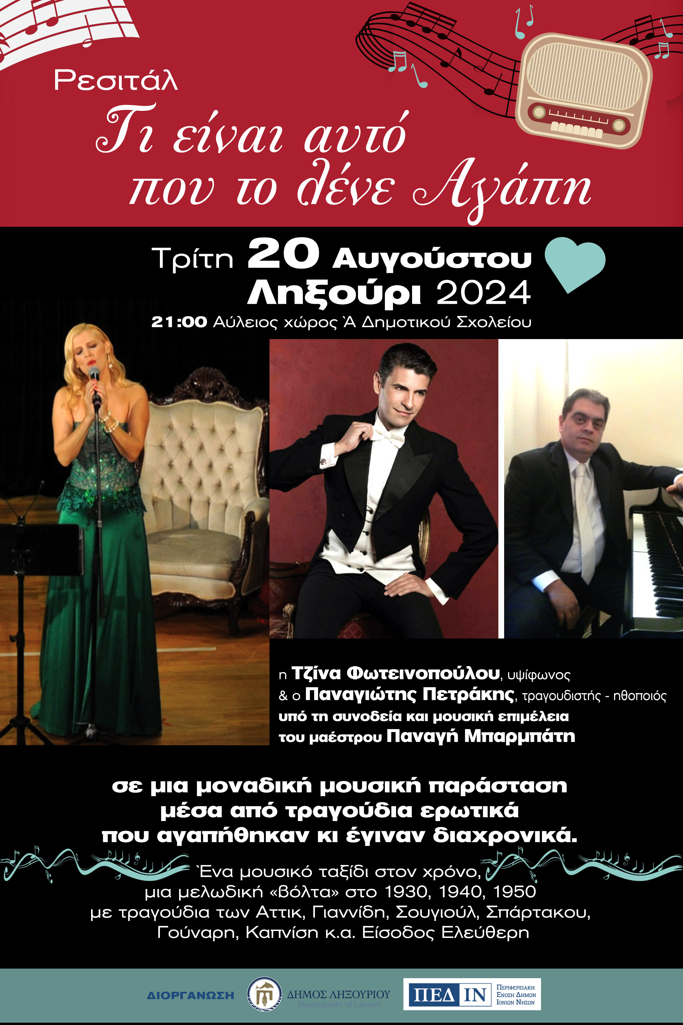 Το ρεσιτάλ διοργανώνεται από το Δήμο Ληξουρίου και την ΠΕΔΙΝ και η είσοδος είναι ελεύθερη.