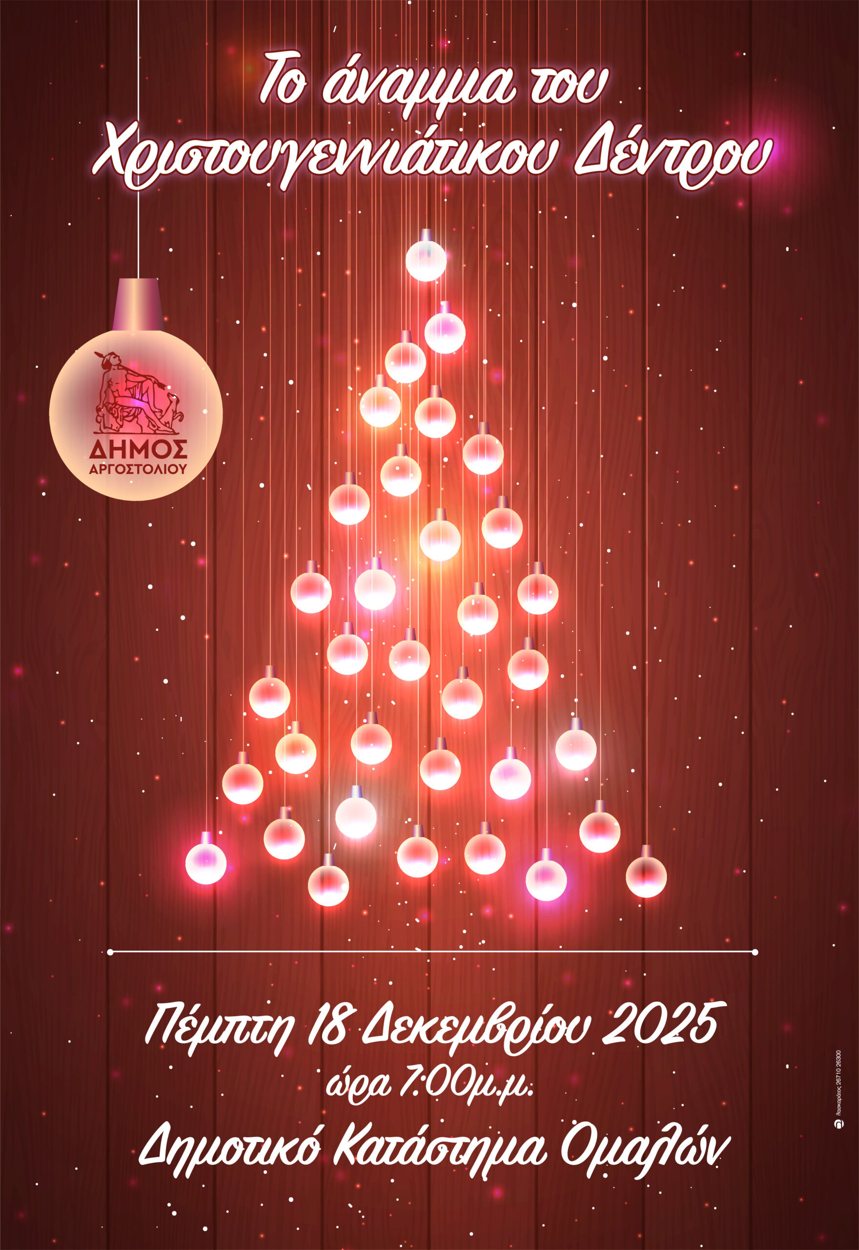 Στο Δημοτικό Κατάστημα Ομαλών και ώρα 7.00μμ, το Άναμμα του Χριστουγεννιάτικου δένδρου.