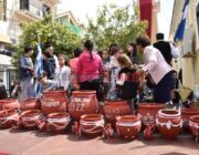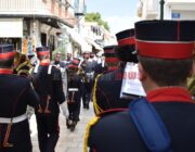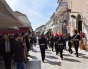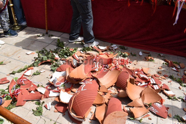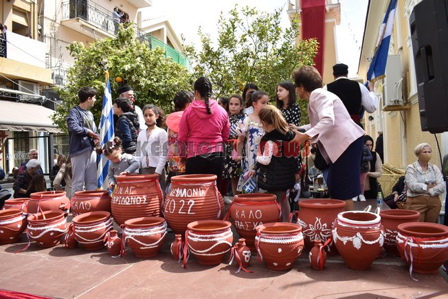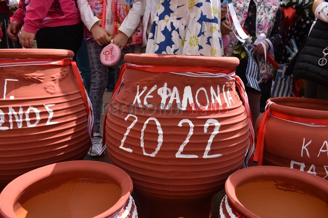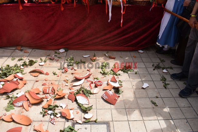 Από την Πλατεία Καμπάνας ξεκίνησε η Φιλαρμονική του Δήμου Αργοστολίου μαζί με συγκρότημα από το Λύκειο Ελληνίδων και αφού διέσχισε το Λιθόστρωτο κατέληξε στον Άγιο Σπυρίδωνα, όπου η. κ. Ευρώπη Μοσχονά – Μαραγκάκη Πρόεδρος του Λυκείου Ελληνίδων είχε το πρώτο λόγο. Έδινε κατευθύνσεις, έσπαγε στάμνες και από το Καμπαναριό της Εκκλησίας ο Βαγ. Μαζαράκης έριξε τις πρώτες στάμνες. Ακολούθησε βέβαια….μακελειό μετά, ποιος θα πρωτοσπάσει στάμνα. Έδωσε και στους δημοσιογράφους μια μεγάλη ασήκωτη στάμνα για να τη σπάσουμε και έτυχε ο λαχνός στην αφεντιά μου.