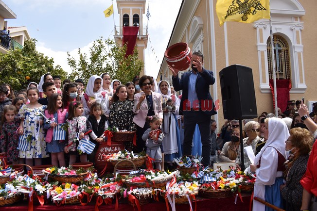 Πάμε στα δικά μας. Παραβρέθηκαν ο Βουλευτής κ. Π. Καππάτος, ο αντιπεριφερειάρχης κ. Στ. Τραυλός, ο Δήμαρχος κ. Θ. Μιχαλάτος, (κανένας αντιδήμαρχος), όπου όλοι μαζί από τον Άγιο Σπυρίδωνα μεταφέρθηκαν στην Πλατεία Καμπάνας και από το σπίτι των Δεμπόνων πέταξαν τις γλάστρες της …..ζωής τους. Εκεί ήταν οι Αδελφοί Καραβιώτη με καλλιτεχνικό πρόγραμμα, με Κεφαλονίτικα αλησμόνητα τραγούδια και χόρεψε παραδοσιακούς χορούς το Λύκειο Ελληνίδων.