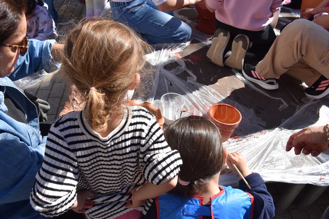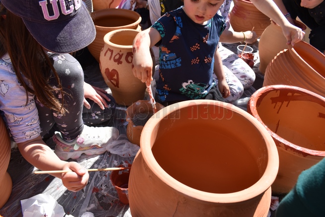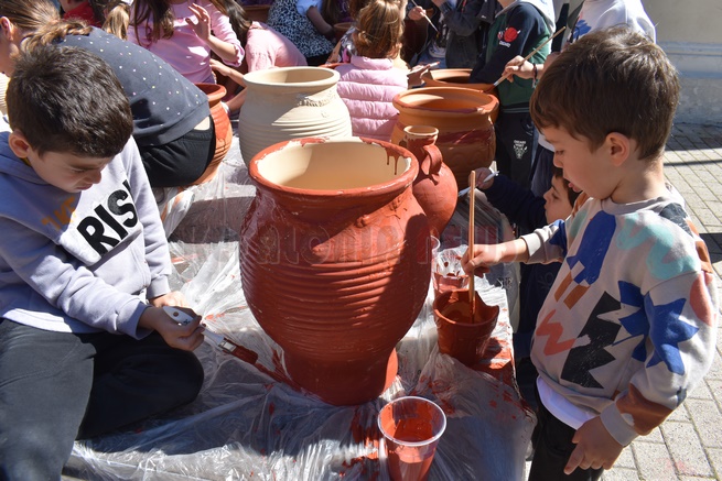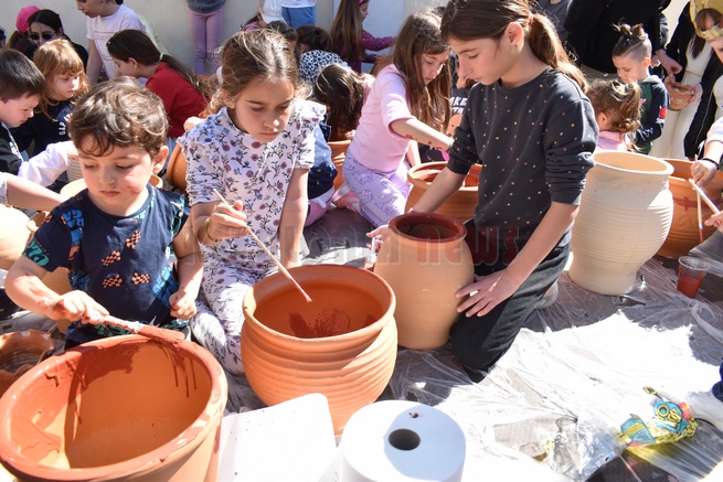 Τα παιδιά ζωγράφισαν τους δικούς τους μπότηδες, με τη βοήθεια και την καλλιτεχνική καθοδήγηση της ομάδας της «Τριλογίας». Έχουν υπήρχαν ειδικά διαμορφωμένα σημεία, ώστε όλα έγιναν με άνεση και ασφάλεια.