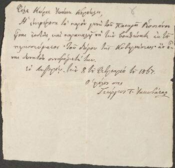Την ίδια πολιτική βλέπουμε να ακολουθείται και μετά την Ένωση των Επτανήσων με την Ελλάδα. Όπως προκύπτει από τα έγγραφα από το Αρχείο των Τυπάλδων Ιακωβάτων (Αρχείο Ιακωβατείου Βιβλιοθήκης) που εδώ παρουσιάζουμε, το πιστοποιητικό πενίας εξακολουθούσε να εκδίδεται από τον εφημέριο και να υπογράφεται από δύο μάρτυρες (βλ. εικόνα 1). Διαπιστώνουμε, όμως, ότι ήταν αναγκαία και η μεσολάβηση του βουλευτή Γεωργίου Τυπάλδου Ιακωβάτου προς τον αρμόδιο κρατικό λειτουργό, για να προωθηθεί το αίτημα της οικονομικής ενίσχυσης του ενδεούς από το «δώρον της Κυβερνήσεως», όπως χαρακτηριστικά αναφέρεται (βλ. εικόνες 2,3,4).