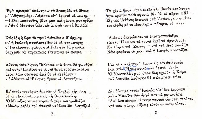 Για πολλά χρόνια το ποίημα ή μέρος από αυτό το μάθαιναν οι μαθητές στα σχολεία του νησιού μας όταν πλησίαζε η επέτειος του ΟΧΙ.