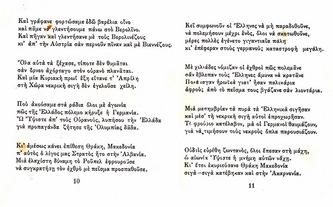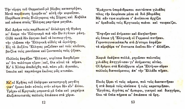 Από το σχολείο πέρασε και στη μνήμη του λαού, ξεχάστηκε ο δημιουργός του και πολλοί πιστεύουν πως πρόκειται για δημώδες άσμα. Οι φωτογραφίες που συνοδεύουν το ποίημα του φυλλαδίου είναι επιπρόσθετες και αφορούν εκείνα τα χρόνια του σκληρού πολέμου. Ας είναι μνημόσυνο αιώνιο για τον ποιητή από τα Δειλινάτα που συνόψισε υπέροχα στιχουργικά την ιστορία του Ελληνο – ιταλο-γερμανικού Πολέμου.
