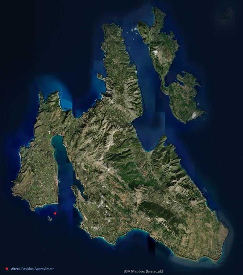 3. Θέση ναυαγίου αποβατικού σκάφους “F 495”(+14-9-1943)