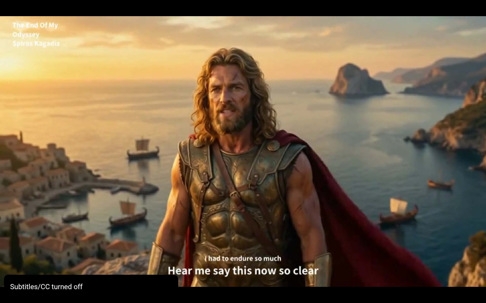 Με μεγάλη μου χαρά σας ανακοινώνω πως χάρη στη θαυματουργή νέα τεχνολογία της Τεχνικής Νοημοσύνης κατάφερα και δημιούργησα το παρακάτω απίστευτα υπέροχο μουσικό βιντεοκλίπ μου με θέμα την Οδύσσεια του Ομήρου! Τίτλος του αγγλόφωνου τραγουδιού μου, το οποίο ίσως γνωρίζετε από παλαιότερη δημοσίευση μου για την ηχητική εκδοχή του, είναι το “The End Of My Odyssey Is Near” που στα ελληνικά μεταφράζεται σε “Το Τέλος Της Οδύσσειας Μου Είναι Κοντά!”