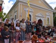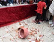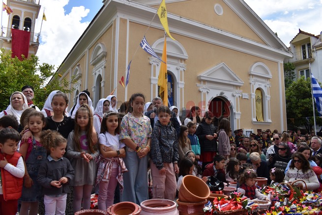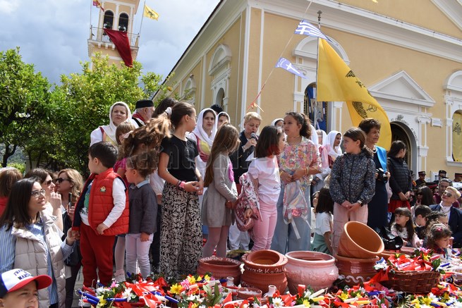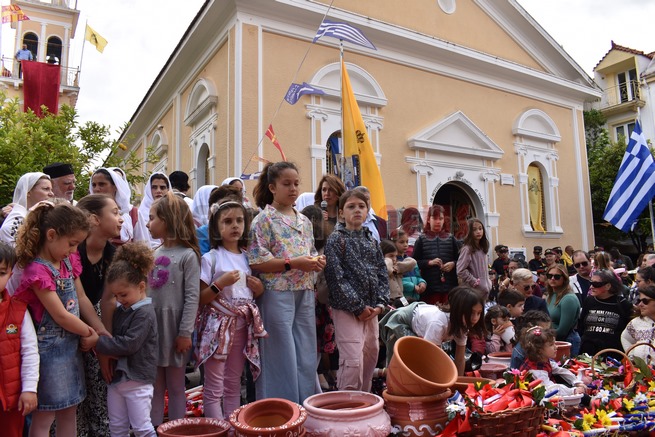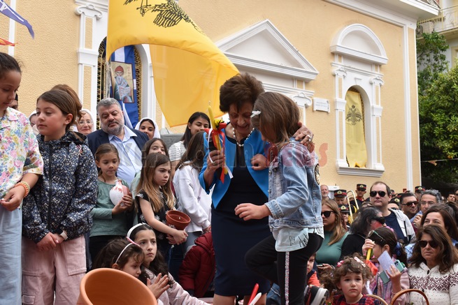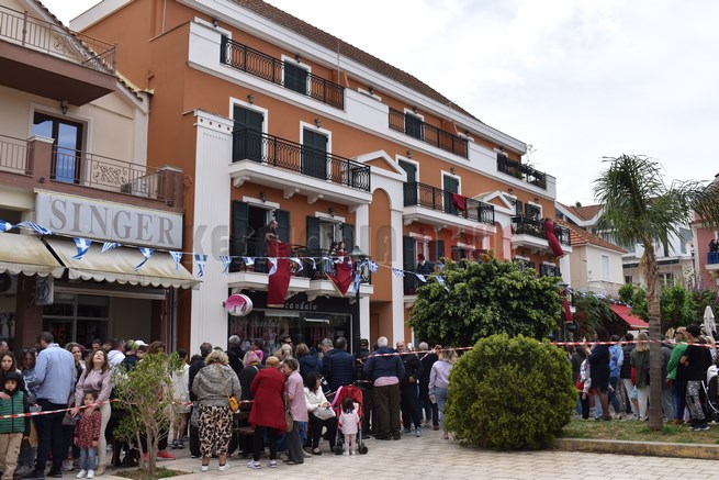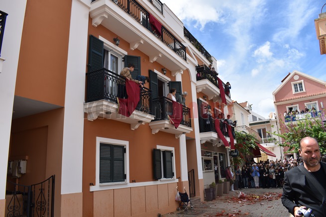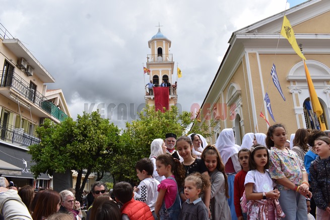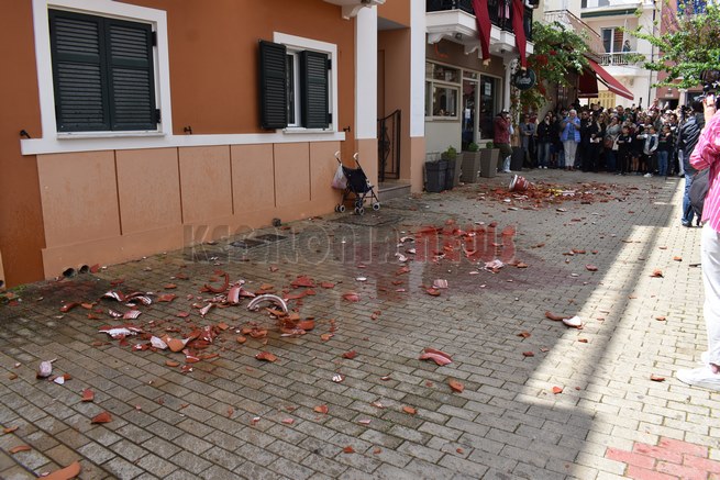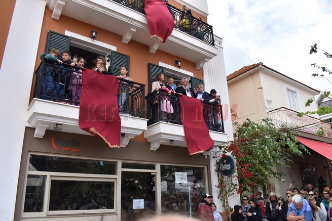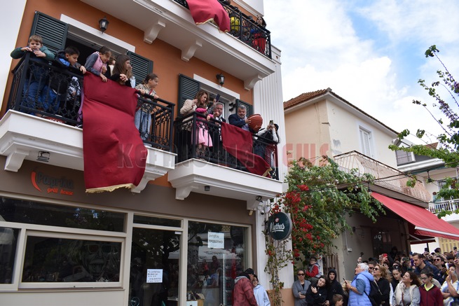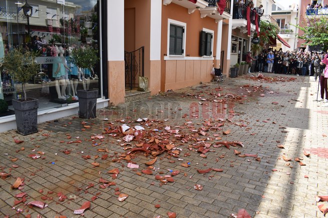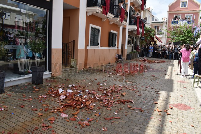 Χαιρέτησε ο Δήμαρχος Αργοστολίου Θεόφιλος Μιχαλάτος και στη συνέχεια ήρθε και ο Βουλευτής Π. Καππάτος, εκεί ήταν και ο Βίκτορας Ρουχωτάς. Φέτος ήταν απίστευτη η συμμετοχή του κόσμου. Γέμισε το Λιθόστρωτο σε σημείο να μην μπορείς να προχωρήσεις. Το Λύκειο Ελληνίδων και η κ. Ευρώπη Μοσχονά πάλι πρωταγωνίστησε στο έθιμο μαζί με τα …”παιδιά” της όπου χόρεψαν και μαζί με μικρά παιδιά πέταξαν και έσπασαν μπότηδες. Όπως κάθε χρόνο ο Βαγγέλης Μαζαράκης πάνω από το Καμπαναριό πέταξε στάμνες. Η Φιλαρμονική “Διονύσης Λαυράγκας” με μαέστρο τον Βασίλη Περλεκίδη παιάνισε έξω από τον Άγιο Σπυρίδωνα και μοιράστηκαν από μέλη του Λυκείου Ελληνίδων αναστάσιμες λαμπάδες προσφορά του Δήμου Αργοστολίου.