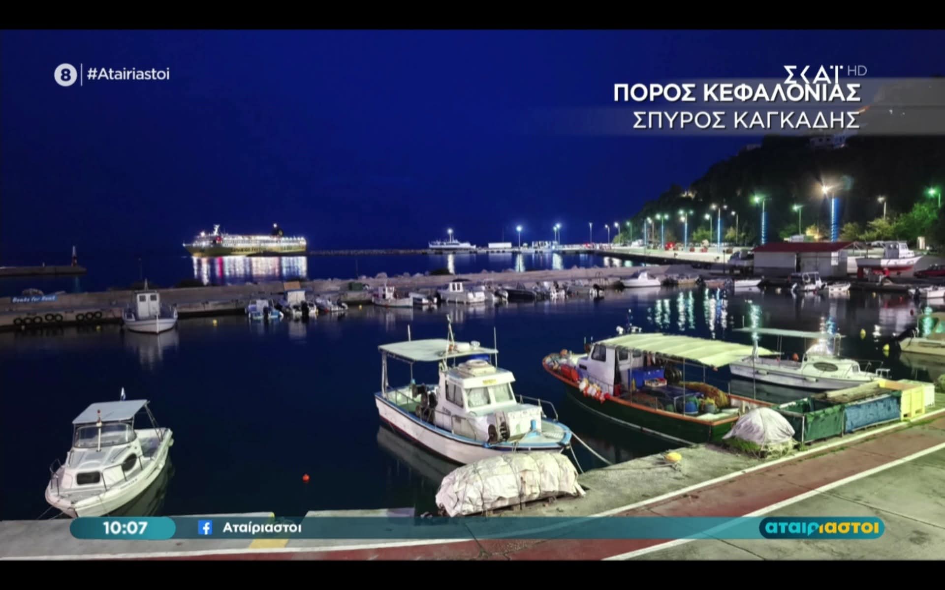 Ευχαριστούμε θερμά και ευχόμαστε ολόψυχα καλά Χριστούγεννα και χρόνια πολλά για την ονομαστική τους εορτή στην αγαπημένη μας μετεωρολόγο του ΣΚΑΪ Χριστίνα Σούζη και στον παρουσιαστή Χρήστο Κούτρα που νωρίτερα σήμερα πρόβαλαν στη δημοφιλή τηλεοπτική εκπομπή “Αταίριαστοι” φωτογραφία μου με το στολισμένο λιμάνι του Πόρου της Κεφαλονιάς μας την ώρα που έρχονται το Φέρι Μποτ της Levante Ferries με τους επισκέπτες των Χριστουγέννων!