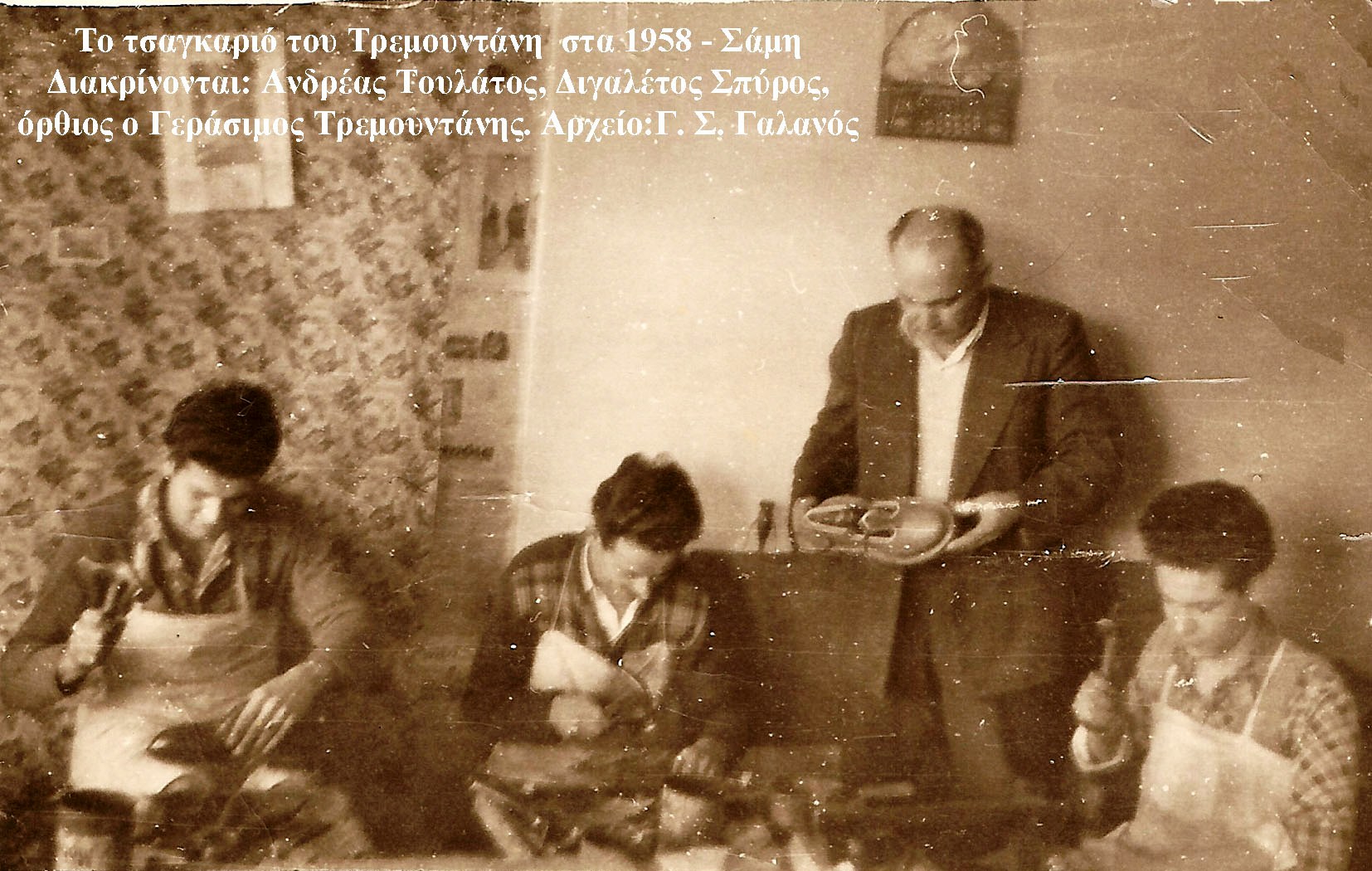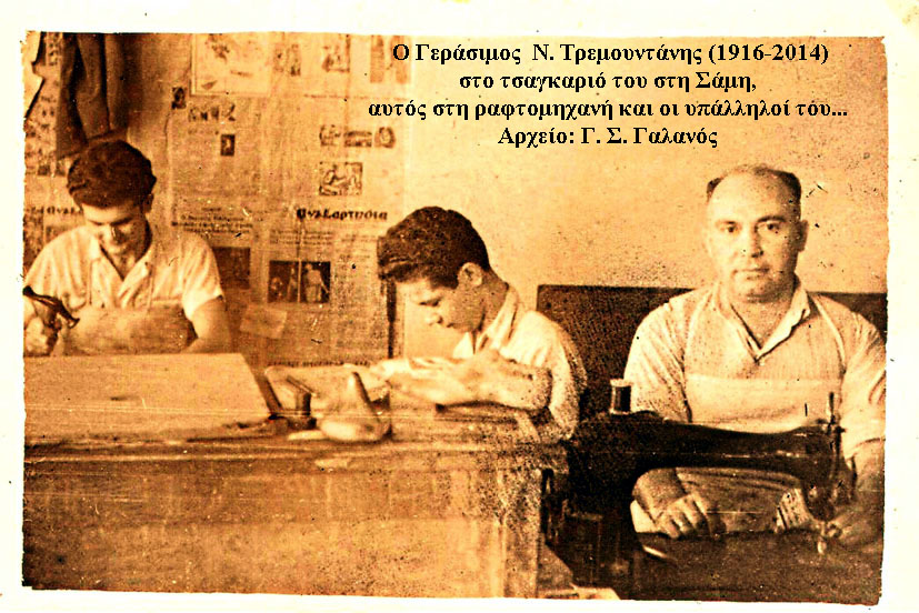 Στις πόλεις υπήρχαν και μεγάλα τσαγκάρικα, που μέσα σ’ αυτά δούλευαν πολλοί τσαγκάρηδες. Ένα τέτοιο ήταν και του Γεράσιμου Νικολάου Τρεμουντάνη.