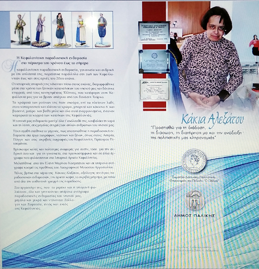 Εκεί στα Σαρλάτα είχε κάνει το πατρικό της σπίτι εργαστήρι και πόστο συνάντησης φίλων και δικών της. Έφτιαχνε παραδοσιακές φορεσιές, στολές καρναβαλικές, κούκλες εμπορίου με παραδοσιακές στολές, ρούχα για πολιτιστικούς συλλόγους, που με τη σειρά τους κάποιοι σύλλογοι αναγνώρισαν το έργο της και την τίμησαν. Πήρε χαρά και παράταση χρόνων. Συνεργαστήκαμε για το απλό, το δικό μας φκιασίδι της κεφαλονίτικης φορεσιάς.