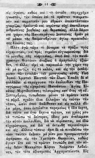 [1] Σύμφωνα με την παράδοση στις  24 του Σεπτέμβρη εορτάζεται  το θαύμα που έγινε στο Μοναστήρι της  Παναγίας της Μυρτυδιώτισσας, «της ιάσεως του παραλύτου», Βλ. Εφημερίδα «Νέα Κεφαλληνία», Αρ. Φυλ. 152,1/10/1888, σελ.3β.