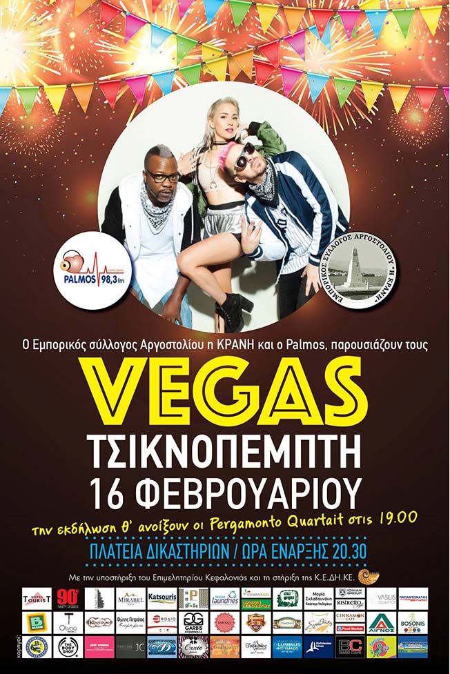 - Και στις 20:30 το μεγάλο όνομα της βραδυάς, οι VEGAS επιτέλους κοντά μας για να μας τραγουδήσουν όλες τις μεγάλες τους επιτυχίες και τα νέα τους τραγούδια.