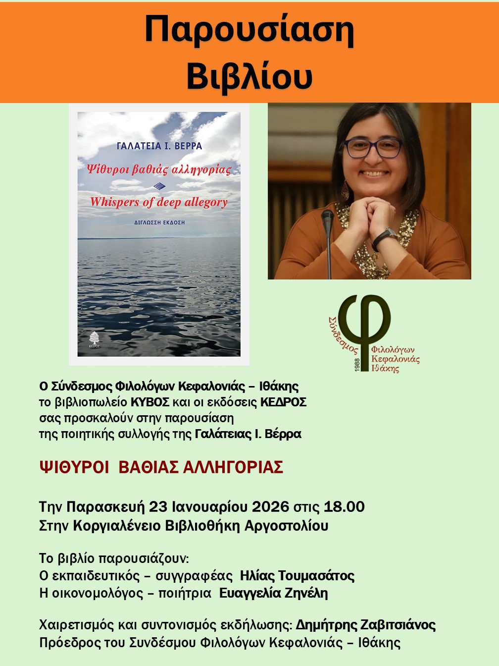 ΥΠΕΝΘΥΜΙΣΗ!! ΣΗΜΕΡΑ Η ΒΙΒΛΙΟΠΑΡΟΥΙΑΣΗ //ΒΕΡΡΑ ΓΑΛΑΤΕΙΑ – ΨΙΘΥΡΟΙ ΒΑΘΙΑΣ ΑΛΛΗΓΟΡΙΑΣ