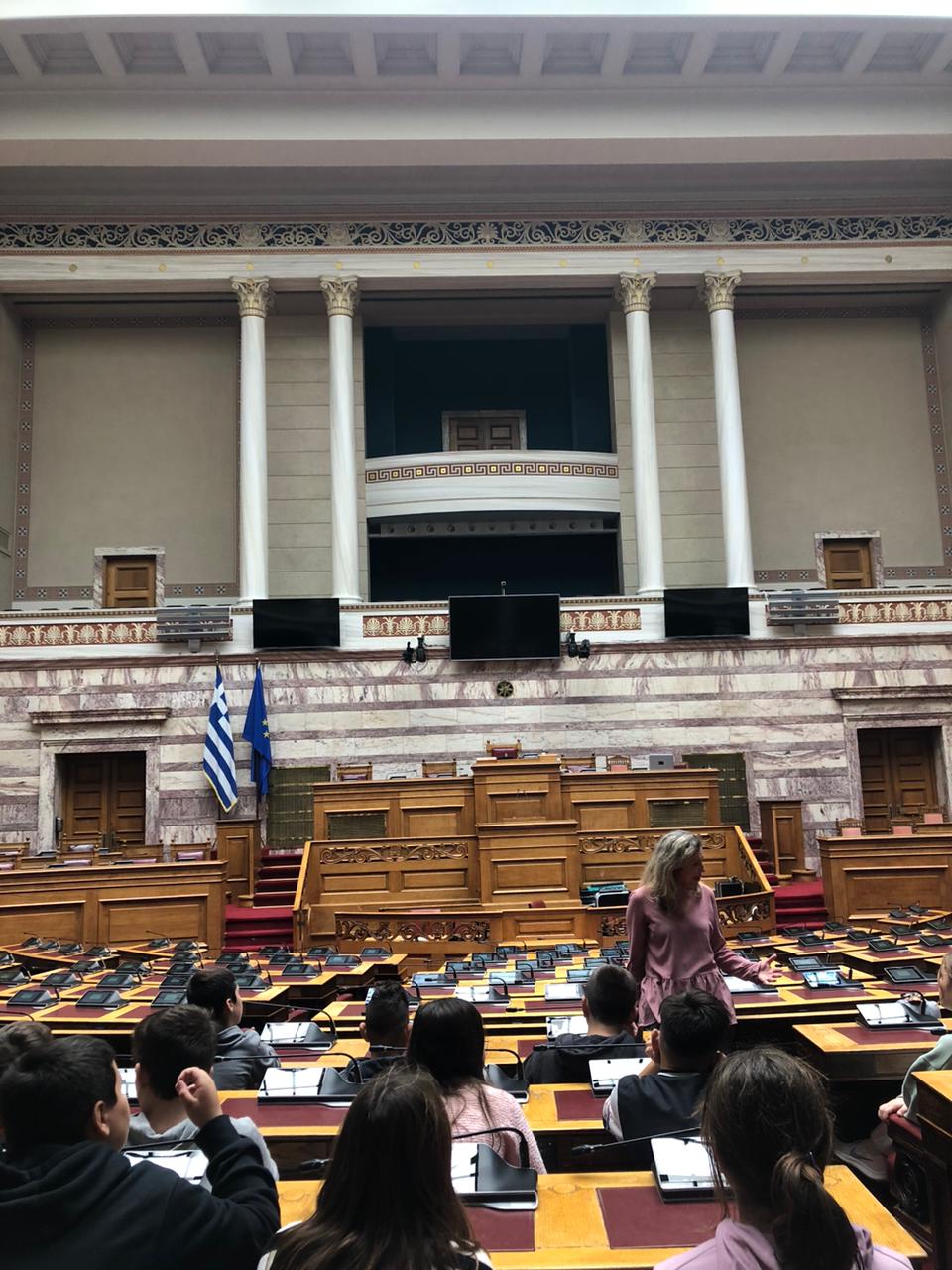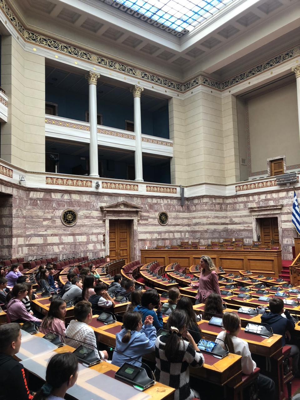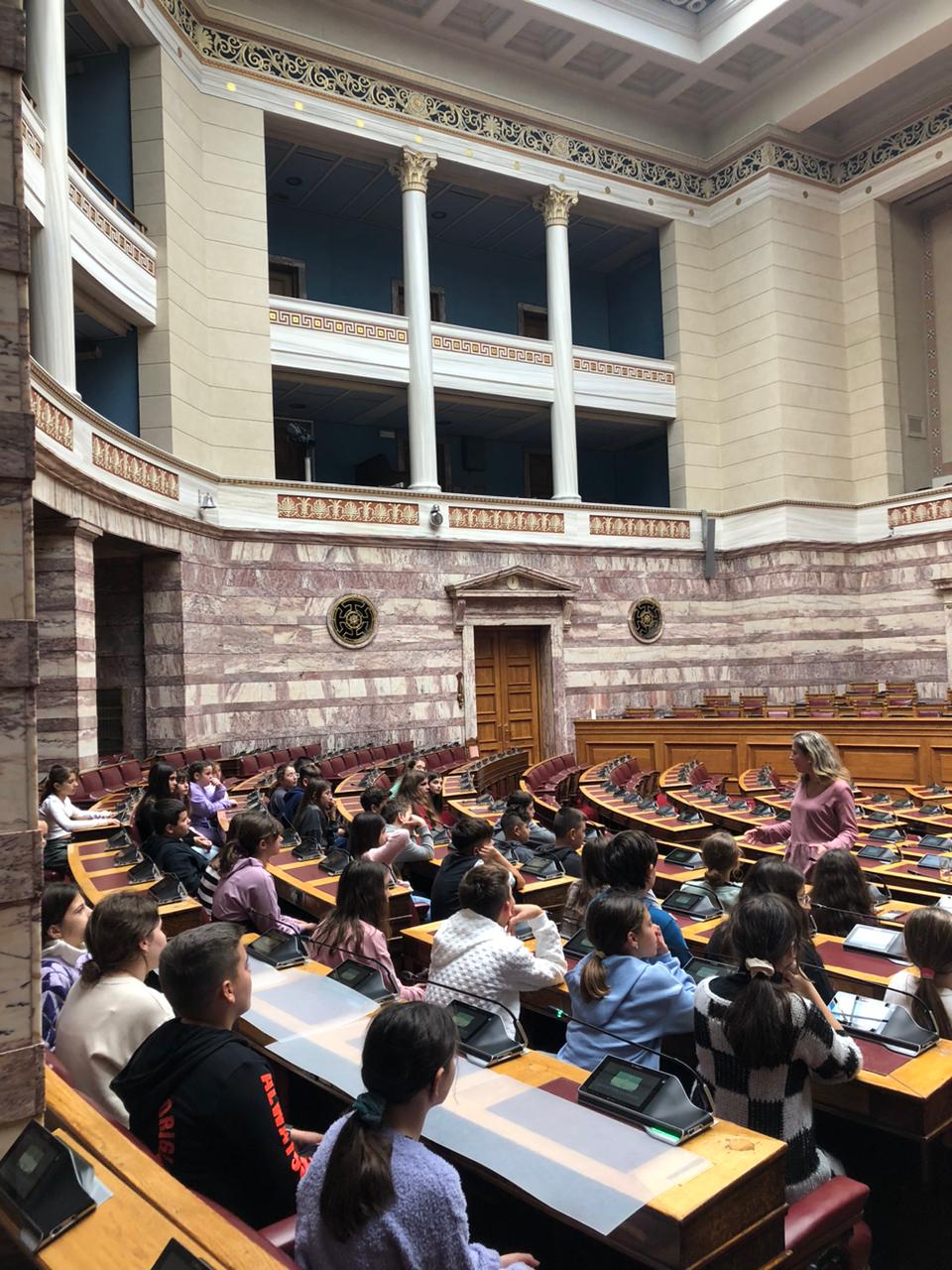 Οι μαθητές της ΣΤ΄ τάξης περιηγήθηκαν στους χώρους της Βουλής , γνώρισαν από κοντά την ιστορία του Μεγάρου και ξεναγήθηκαν στην έκθεση που φιλοξενείται στην Αίθουσα «Ελευθέριος Βενιζέλος». Κατά τη διάρκεια της επίσκεψης στο κτίριο του Κοινοβουλίου ενημερώθηκαν για τη λειτουργία του και τη συμβολή του ως θεσμός και πυλώνας του Δημοκρατικού μας Πολιτεύματος.