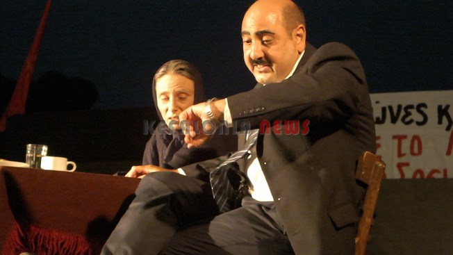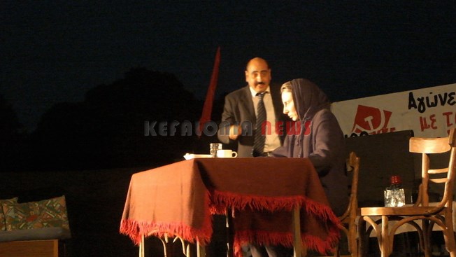 Στο χώρο του ΞΕΝΙΑ φέτος η ΚΝΕ μας παρουσίασε ένα διαφορετικό φεστιβάλ με θέατρο και μουσικοχορευτικό αφιέρωμα στους αγώνες του λαού μας.  Αλλά και το καθιερωμένο παραδοσιακό γλέντι στο τέλος.  Η έκπληξη προήλθε από την θεατρική παράσταση “Η γυναίκα και ο λάθος” του Ιάκωβου Καμπανέλλη. και την υπέροχη απόδοση των: Ηλία Καρόγλα,  Έυη Ματιάτου και Γεράσιμο Παπαδάτο.  Συγχαρητήρια σε όλους. Προέρχονται από το Θεατρικό Εργαστήρι Τέχνης. …   Η σκηνοθεσία ήταν του Πάνου Βαρδάκου.