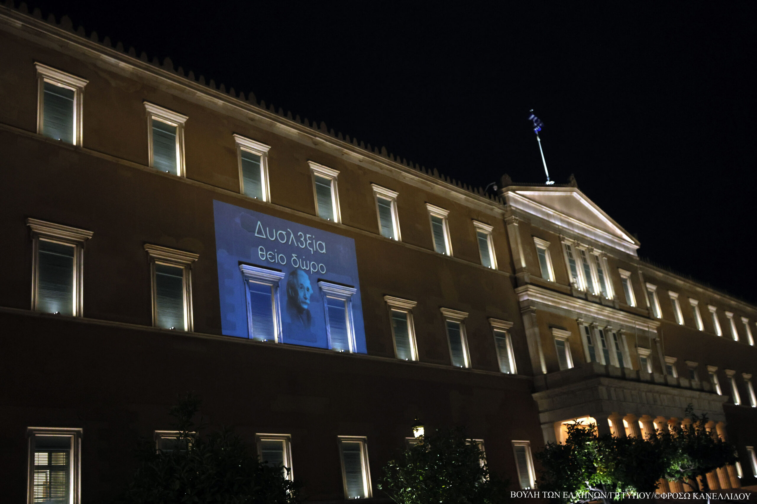 Φωταγώγηση της Βουλής των Ελλήνων για τον Ευρωπαϊκό Μήνα Ευαισθητοποίησης για τη Δυσλεξία