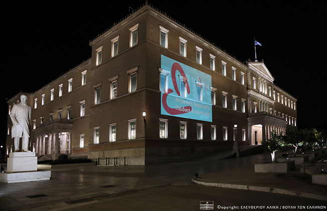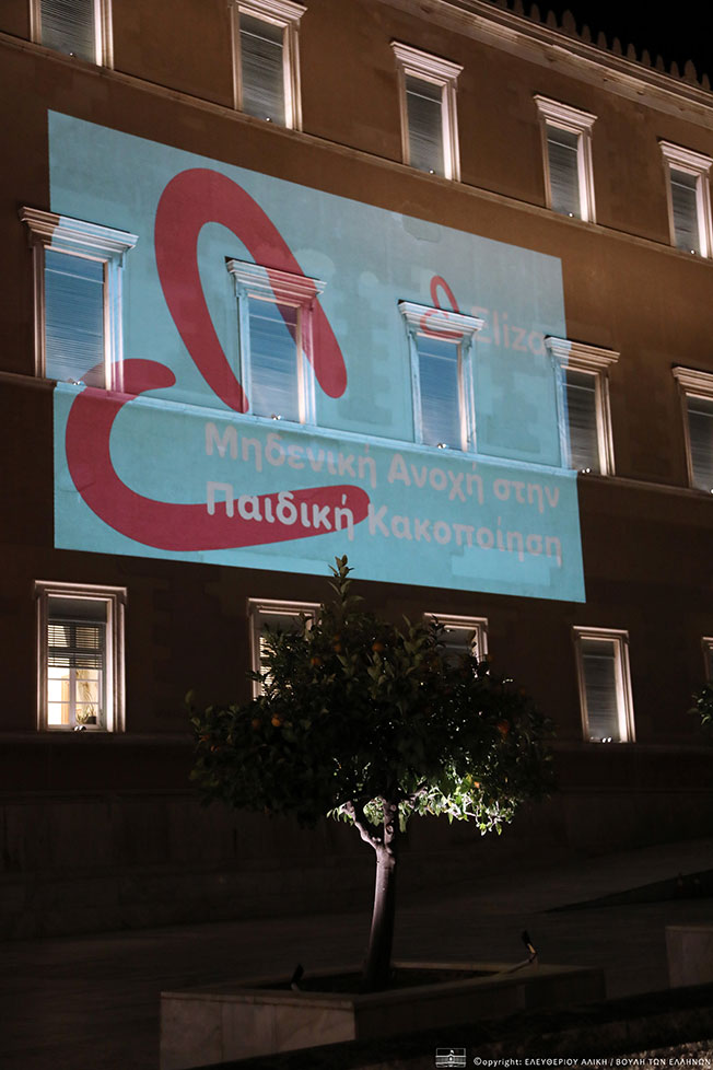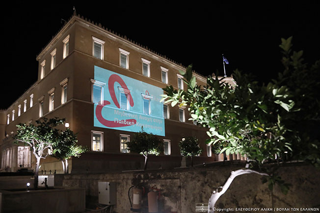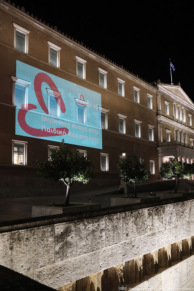 Φωταγώγηση της Βουλής των Ελλήνων για την Παγκόσμια Ημέρα Ενάντια στην Παιδική Κακοποίηση