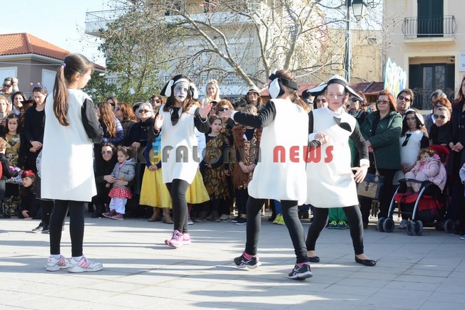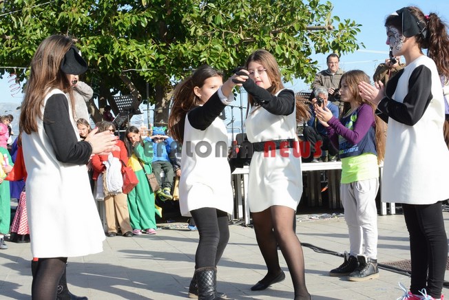Με το τέλος της παιδικής καρναβαλικής παρέλασης, οι μαθητές των δυό Δημοτικών Σχολείων της πόλης μας χόρεψαν στην κεντρική πλατεία της καντρίλιες, το γαϊτανάκι και άλλους χορούς.