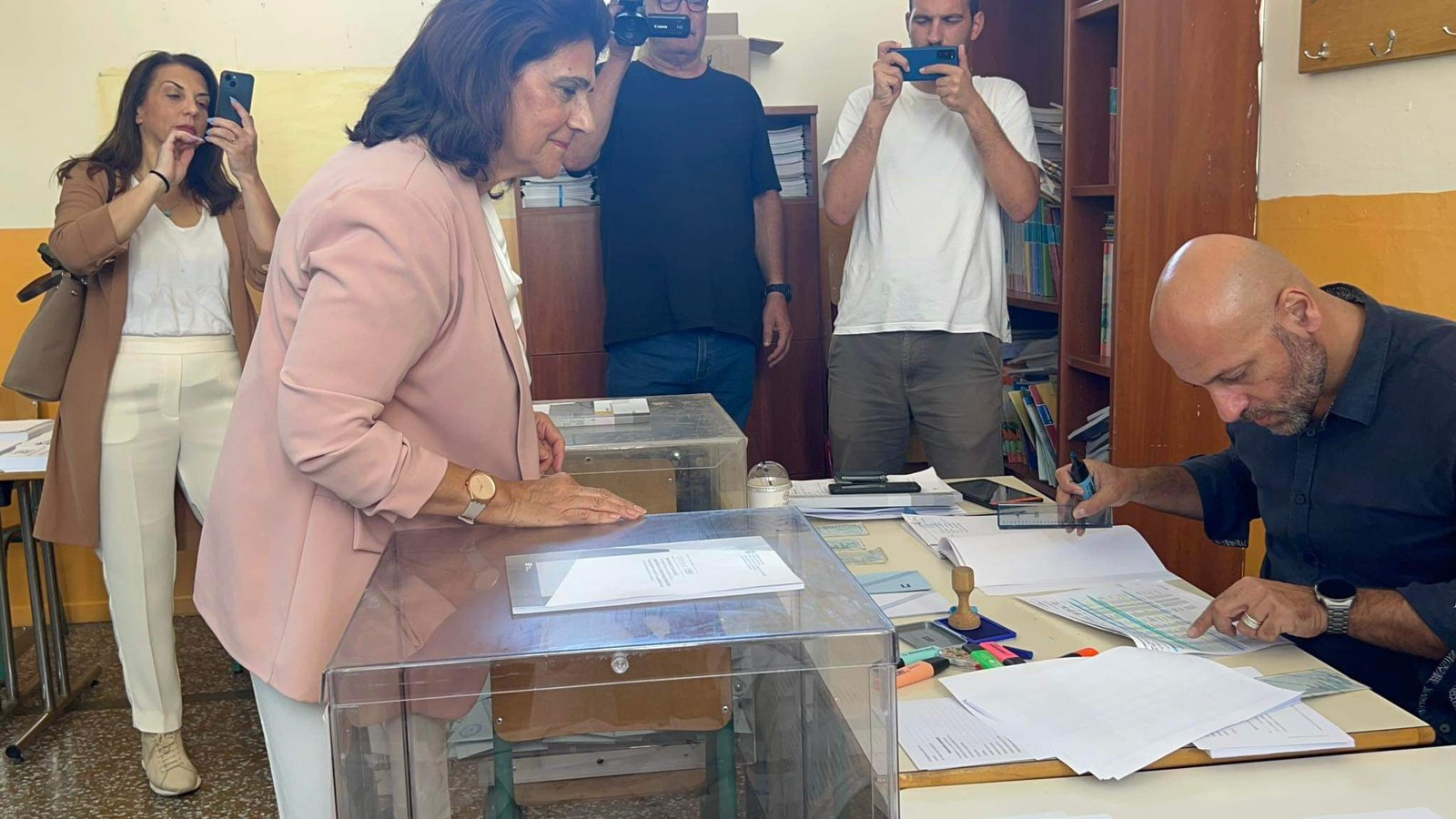 Στο 2ο δημοτικό σχολείο Παλιάς πόλης ψήφισε η Περιφερειάρχης Ιονίων Νήσων Ρόδη Κράτσα η οποία συνοδευόταν από στενούς της συνεργατες.
