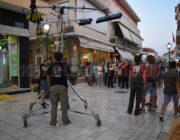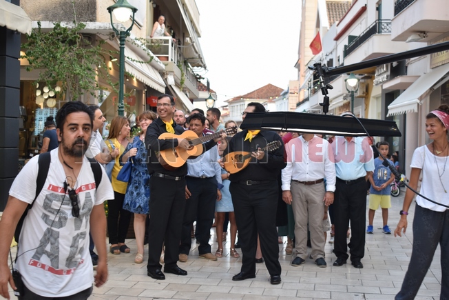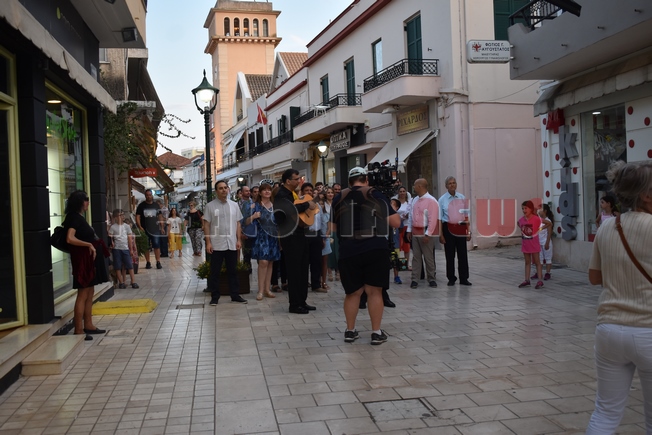 Χθες το απόγευμα στο Λιθόστρωτο μέχρι αργά το βράδυ οι Αφοι Καραβιώτη έκαναν συνεχώς πρόβες για την “Ωραία μας Κεφαλονιά”. Περισσότερα από 25 άτομα τεχνικοί με τεράστια μηχανήματα και drones κατέγραφαν τη σκηνή που σκηνοθετούσε ο Οδυσσέας Λάππας με την άμεση συνεργασία του προέδρου της Levante Ferries Γιώργου Θεοδόση.