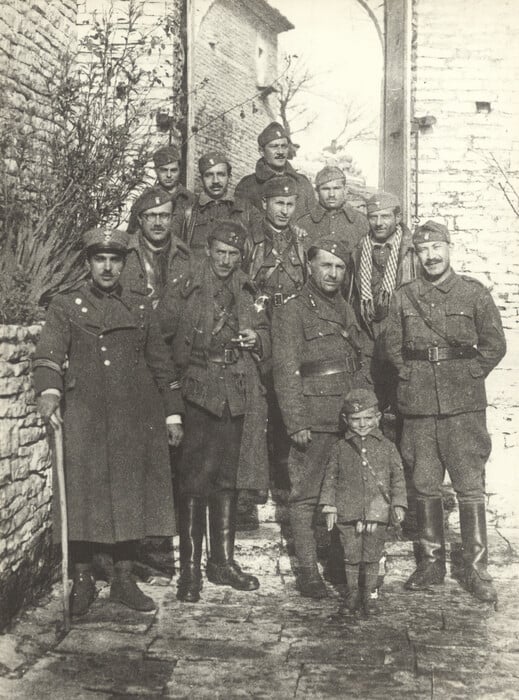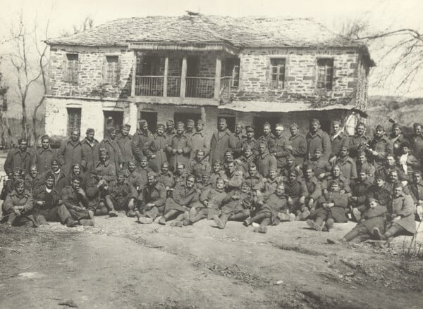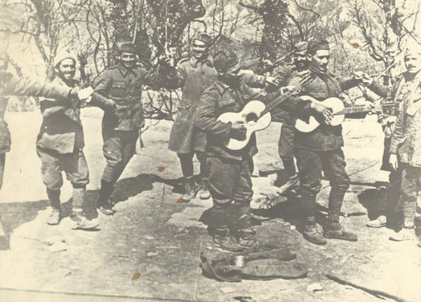 Χορός κατά την ανάπαυλα των μαχών. Είναι αξιοσημείωτο ότι αντίστοιχες φωτογραφίες με στρατιώτες να χορεύουν υπάρχουν σε όλες τις πολεμικές επιχειρήσεις του Ελληνικού Στρατού, ενώ το ίδιο έκαναν και οι αγωνιστές της ελληνικής Επανάστασης του 1821.