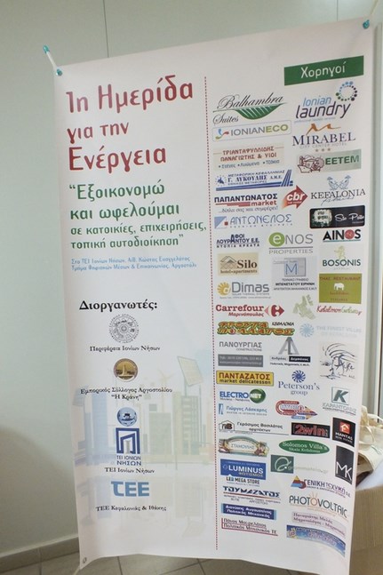 Η Περιφέρεια Ιονίων Νήσων, το ΤΕΕ Κεφαλληνίας και Ιθάκης, το ΤΕΙ Ιονίων Νήσων και ο εμπορικός σύλλογος Αργοστολίου η ΚΡΑΝΗ, συνδυοργάνωσαν την 1η Ημερίδα για την Ενέργεια.