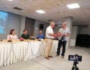 Στο τέλος της συνέντευξης δόθηκαν μπλούζες του Διεθνούς ΟΠΕΝ στην κ. Ρόδης Κράτσα, τον κ. Γ. Τσιλιμιδό και τον αντιπεριφερειάρχη κ. Σταύρο Τραυλό.