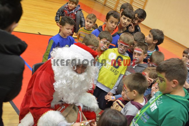 Στο Κλειστό είχε στηθεί και ένας νόστιμος μπουφές γεμάτος μελομακαρονα, κουραμπιέδες και βασιλόπιτα, ενώ ο Άγιος Βασίλης πρόσφερε δώρα σε όλα τα παιδάκια που ήταν εκεί.