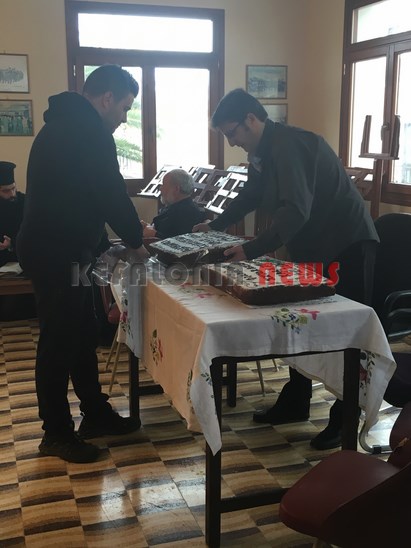 Την πίτα ευλόγησαν οι Ιερείς Μαρκέτος, Λυκούδης, Σωτήρας.