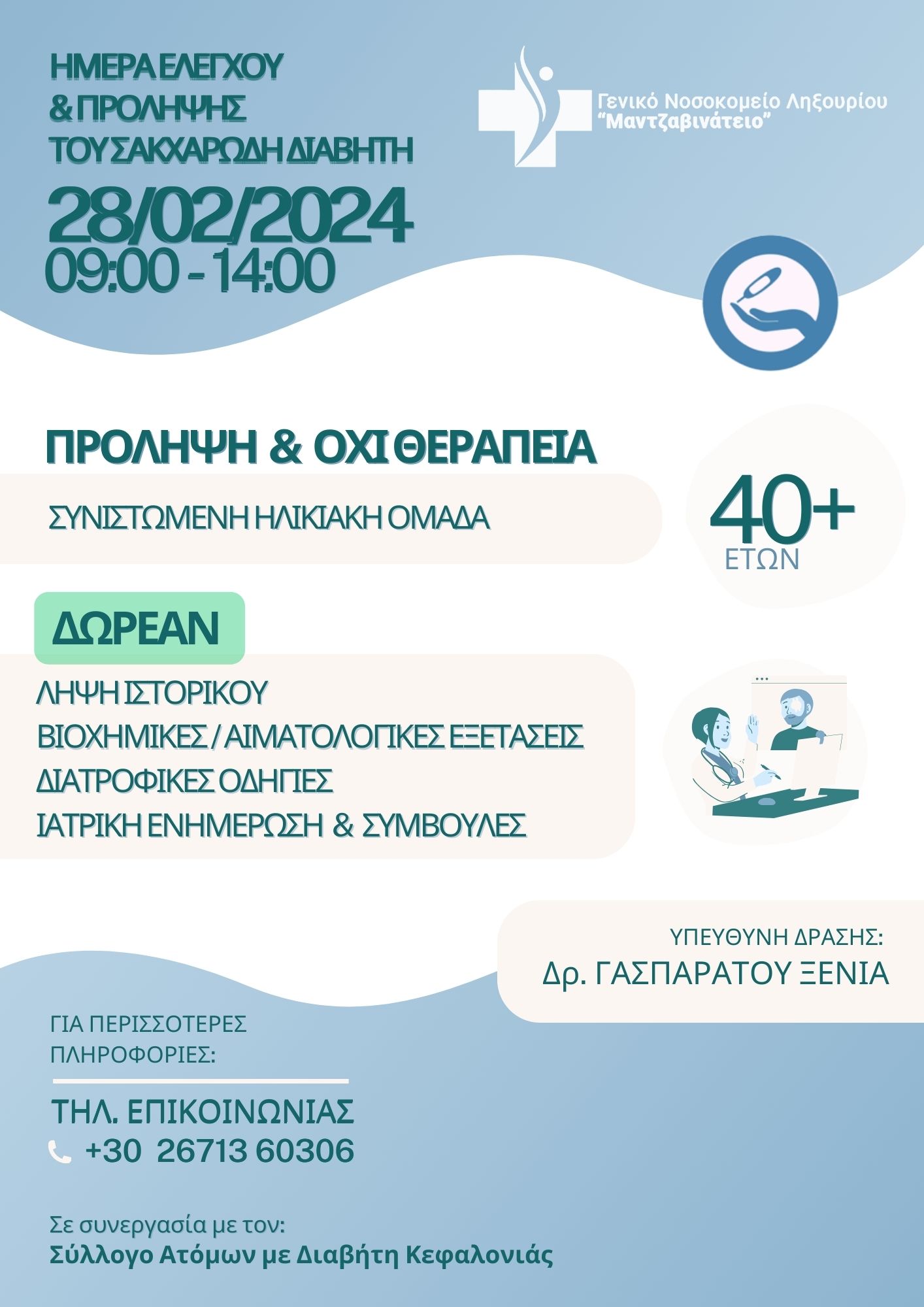 2η Δράση Ημέρας Ελέγχου και Πρόληψης Σακχαρώδη Διαβήτη στο Γ.Ν Ληξουρίου Μαντζαβινάτειο
