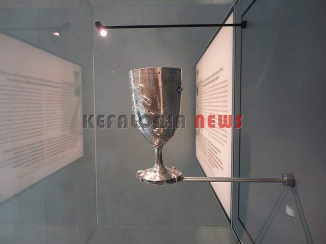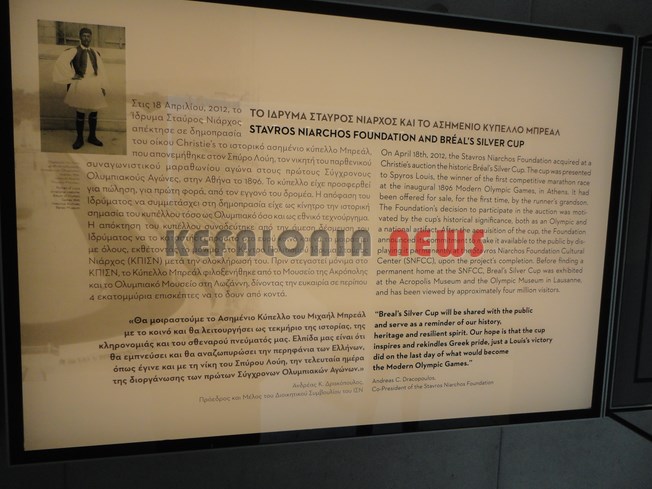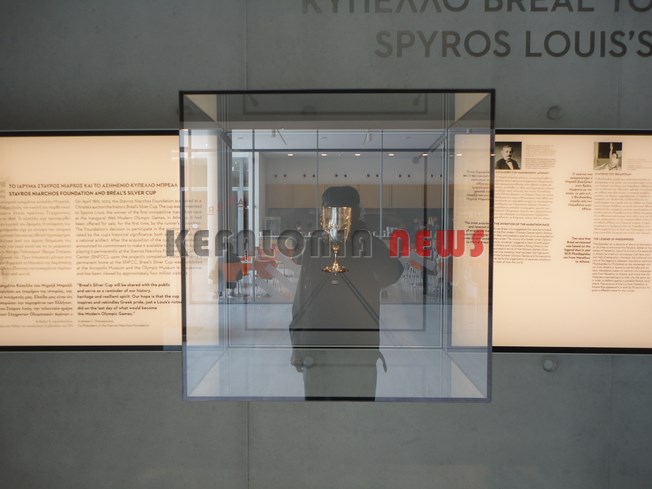 Σε ειδικό εκθετήριο το κύπελλο του Σπύρου Λούη. Το ασημένιο κύπελλον αποκτήθηκε σε δημοπρασία του οίκου Christie’s Το κύπελλο είχε προσφερθεί για πώληση για πρώτη φορά από τον εγγονό  του δρομέα.