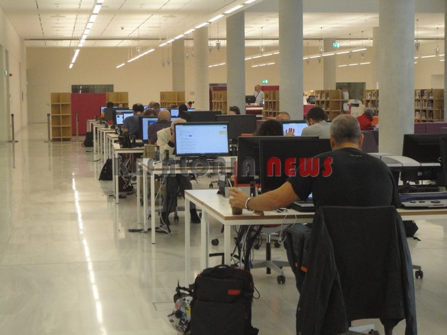 Απέραντοι χώροι με βιβλιοθήκες αλλά με άδεια ράφια.