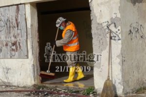 Στην προσπάθεια που καταβάλλεται από τη Δημοτική Αρχή και τους εργαζόμενους για την συνεχή βελτίωση της εικόνας της πόλης και ευρύτερα του Δήμου Ληξουρίου στον τομέα της καθαριότητας, αλλά και στην ανάγκη παρέμβασης σε σημεία της πόλεως που έχουν χρόνια να καθαριστούν, ώστε τα θετικά αποτελέσματα -που είναι ήδη ορατά-, να μεγιστοποιηθούν, σήμερα 21 Νοεμβρίου 2019 και με την αρωγή του Πυροσβεστικού Κλιμακίου της πόλης μας, προβήκαμε σε καθαρισμό των αποδυτηρίων του πρώτου γηπέδου του Παλληξουριακού.”