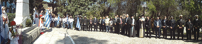Το Λύκειο Ελληνίδων είχε τοποθετήσει επί πάλκου μέλος της, την κ. Κουνάδη, η οποία μας διάβαζε διάφορα τσιτάτα επιφανών του 1821.