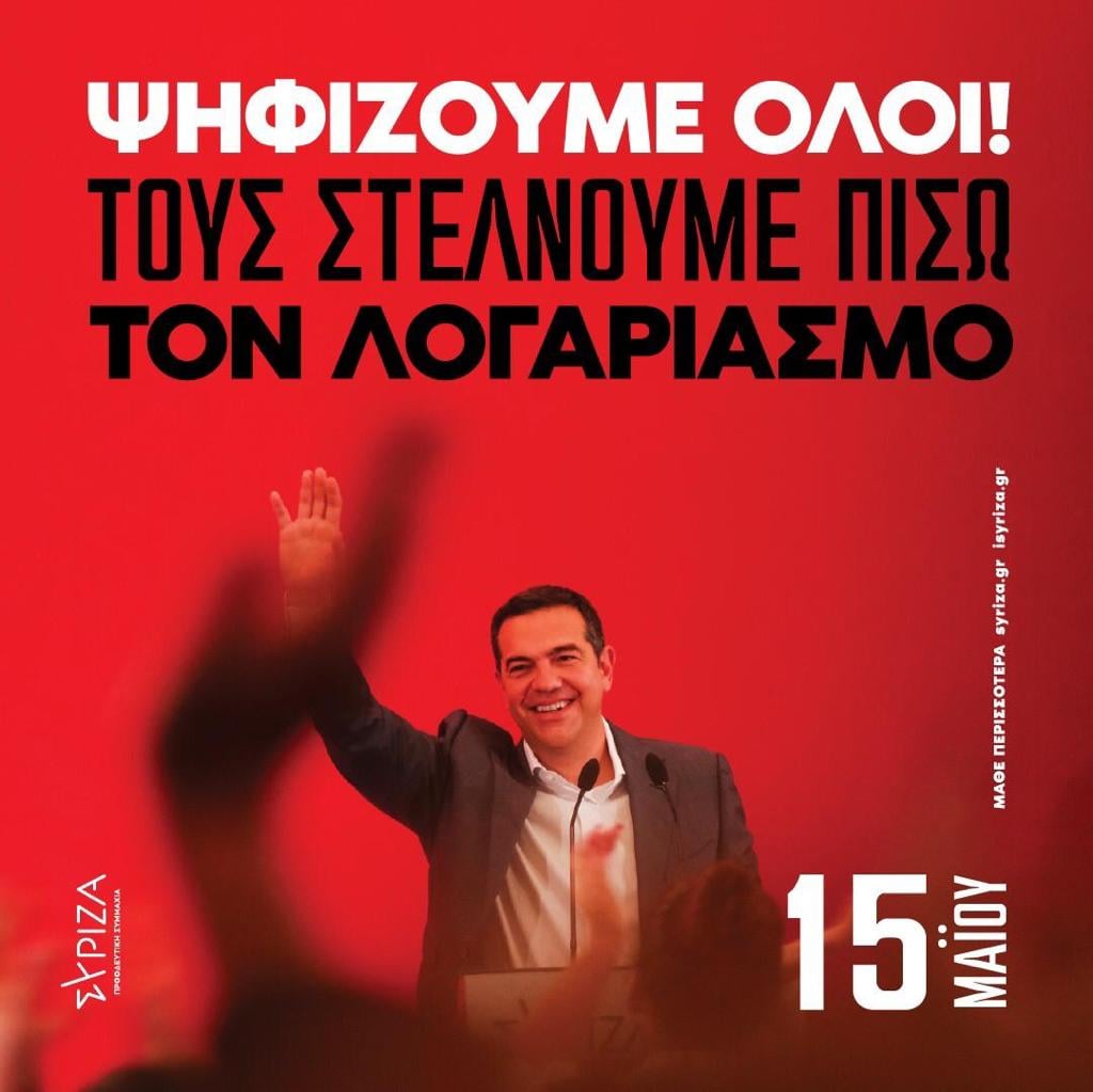 Την Κυριακή 15 Μαϊου η μαζική συμμετοχή όλων μας στις εκλογές του ΣΥΡΙΖΑ είναι η ευκαιρία μας να σταθούμε δίπλα σε τον Αλέξη Τσίπρα, ώστε να δώσουμε προοπτική κι ελπίδα στην ζωή μας!