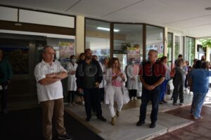 Την περασμένη Πέμπτη το Σωματείο του Νοσοκομείου διοργάνωσε διαμαρτυρία προαύλιο χώρο του Γ. Νοσοκομείου και απαίτησε τη μονιμοποίηση όλων των συμβασιούχων επικουρικών και ΟΑΕΔ.