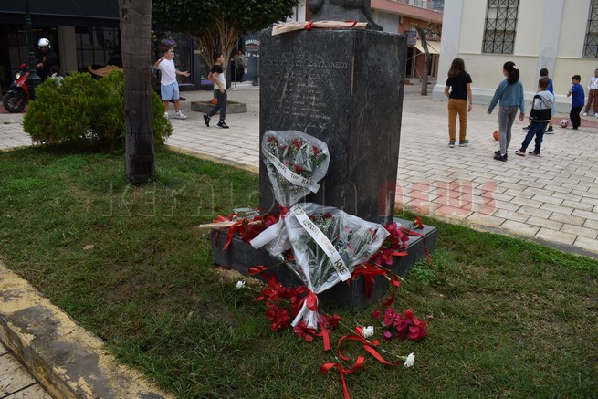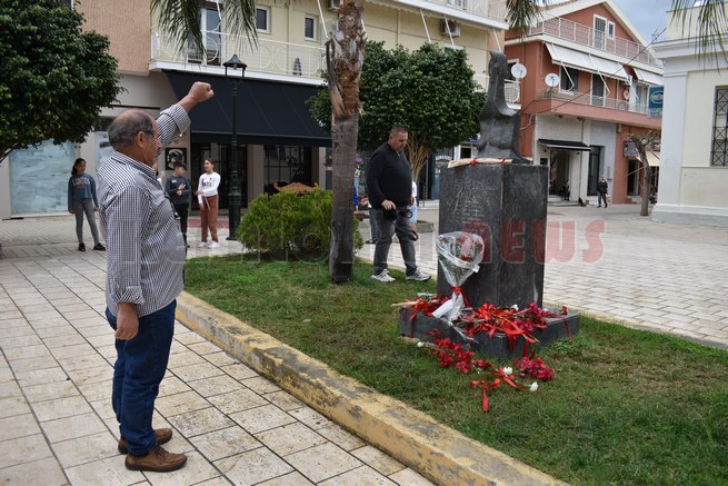 Το ΚΚΕ κατέθεσε Λουλούδια στο στο μνημείο του Πολυτεχνείου στην Πλατεία Καμπάνας, Λουλούδια κατέθεσε και το Σωματείο Συνταξιούχων. Δηλώσεις έκανε ο Γραμματέας της Τ.Ο. Διονύσης Αλιβιζάτος.