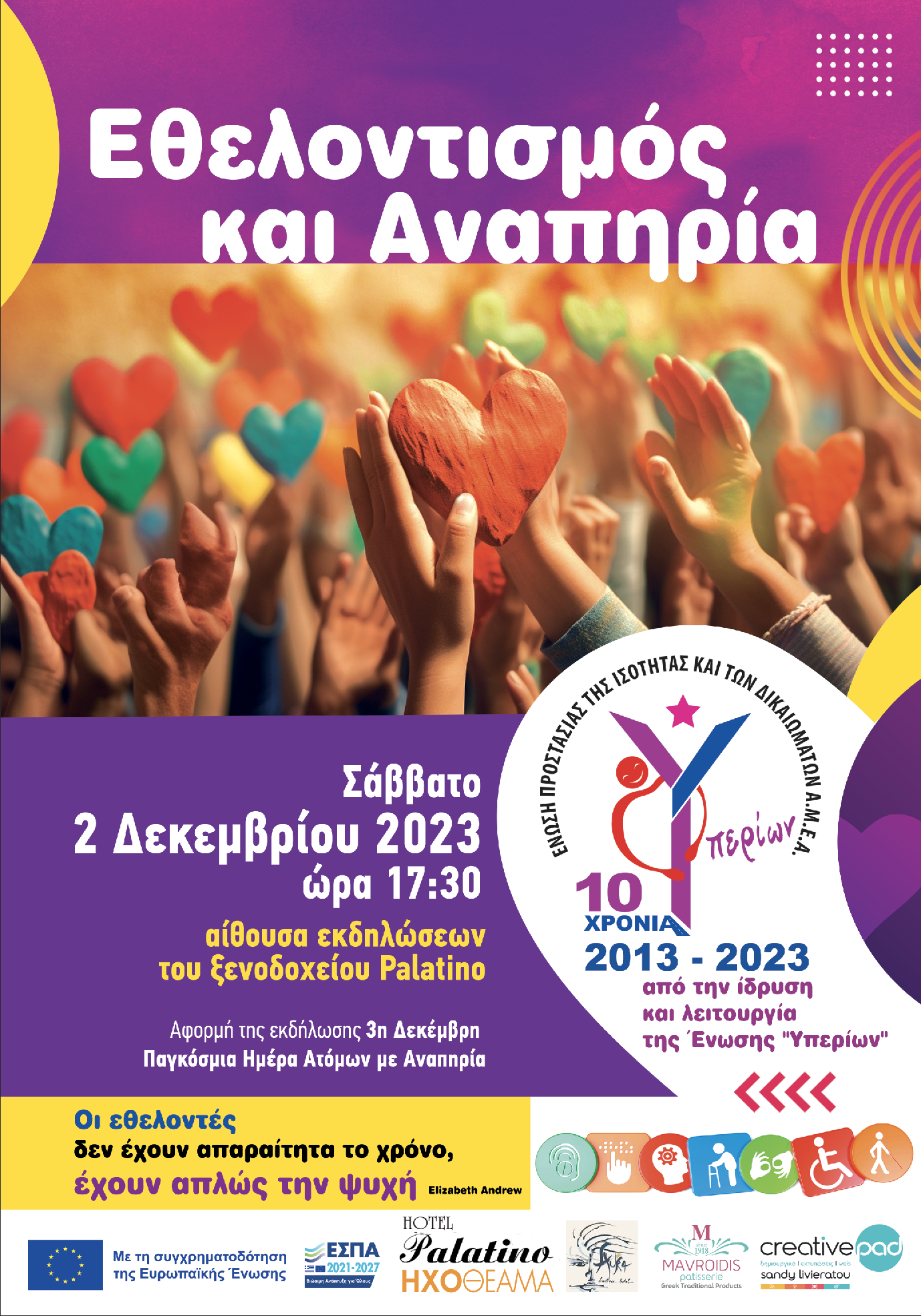Θέμα εκδήλωσης «ΕΘΕΛΟΝΤΙΣΜΟΣ ΚΑΙ ΑΝΑΠΗΡΙΑ».