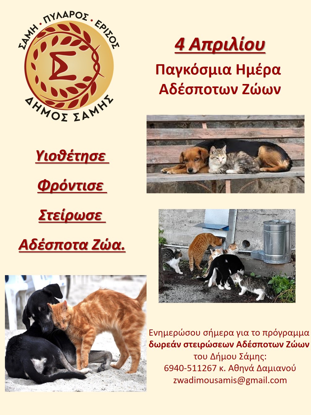 4 Απριλίου Παγκόσμια Ημέρα Αδέσποτων Ζώων