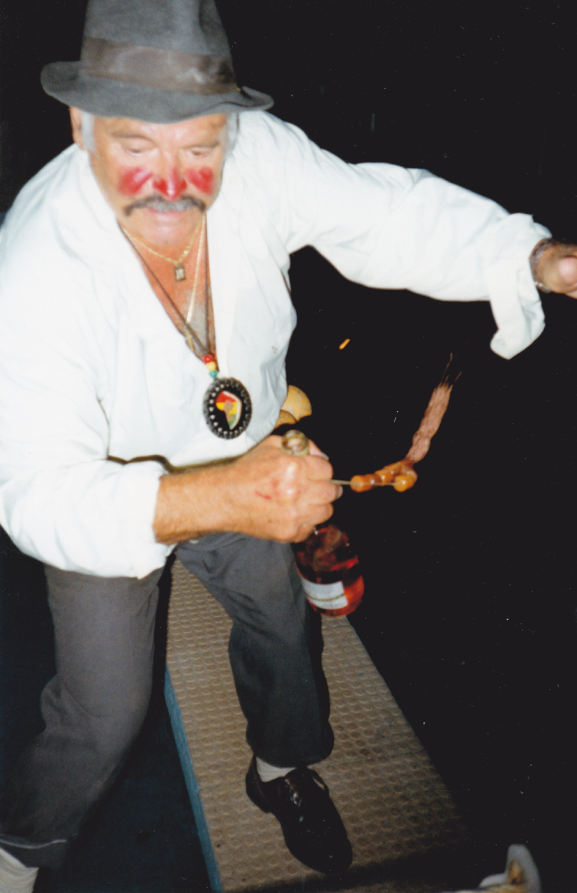 Οργάνωνε στην παραλία του Μεντιτερανέ, πάνω στο κύμα και στην άμμο, σκηνές ελληνικές της αρχαιότητας, του τραγουδιστή, του χιουμορίστα, του θεού Διόνυσου, του τρελού Κεφαλονίτη, ως Άντζελος.., με ένα καπέλο που πάνω του είχε ένα μεγάλο ψάρι και αλώνιζε όλο το χώρο και σκορπούσε χαρά. Έκανε τη ζωή του όμορφη, την ταύτιζε με το ατελείωτο καλοκαίρι και όσο η μέρα στεκόταν στον ουρανό και η μια στιγμή διαδέχονταν την άλλη, ο Βαγγέλης έπραττε ακούραστα, χαμογελαστά και ατελείωτα, γιατί αυτά τα όμορφα είχε μέσα του.