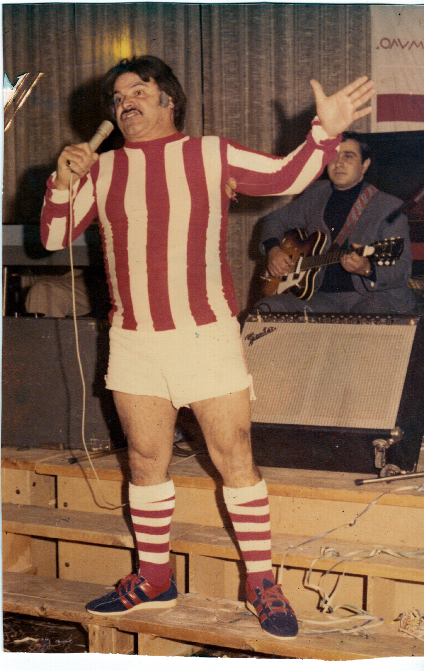 Σε μια εσπερίδα συμπατριωτών μας Κεφαλλήνων και Ιθακησίων ο Βαγγέλης είδε τον καθρέπτη του, είδε κάποιον που ως εμψυχωτής έδινε παράσταση. Ξαφνικά το αγυιόπαιδο του Ληξουρίου, ένα από κείνα που κυνηγούσαν οι παιδονόμοι, ήρθε στην παλιά εικόνα της ζήση του, που, αναμορφωμένη ευγενικά, γιομάτος πείρα και εμπιστοσύνη στον εαυτό του, δοκίμασε με πολλή επιτυχία να δίνει και αυτός παραστάσεις χαράς.