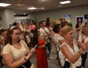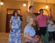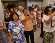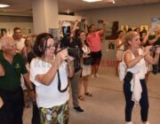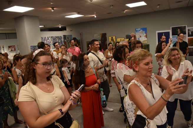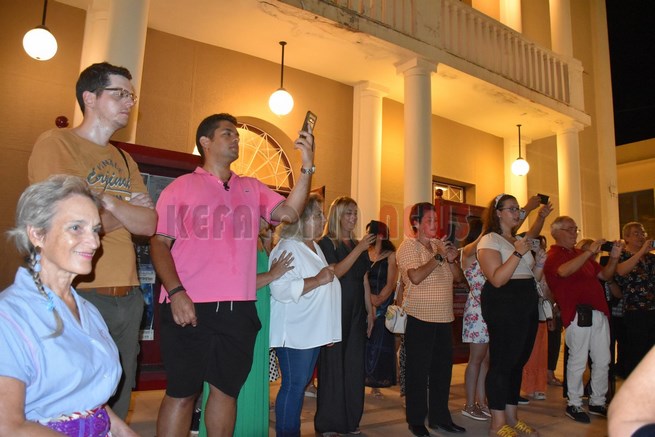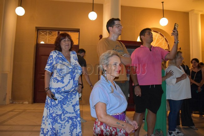 Επισκέφθηκαν και το Θέατρο όπου γίνονταν τα εγκαίνια της 13ης Ανοιχτής Καλλιτεχνικής Τριλογίας, όπου και τραγούδησαν.