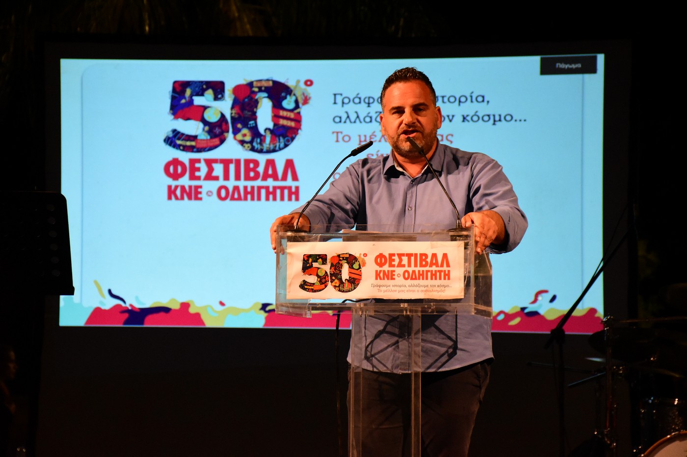 Χθες Σάββατο πραγματοποιήθηκαν οι κεντρικές εκδηλώσεις του 50ου Φεστιβάλ ΚΝΕ – Οδηγητή στο Αργοστόλι στην κεντρική πλατεία της πόλης. με σύνθημα “Γράφουμε ιστορία, αλλάζουμε τον κόσμο… – Το μέλλον μας είναι ο σοσιαλισμός!”