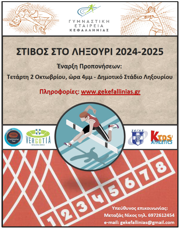 Την Τετάρτη 2 Οκτωβρίου 2024 ξεκινά ο στίβος στο Ληξούρι.