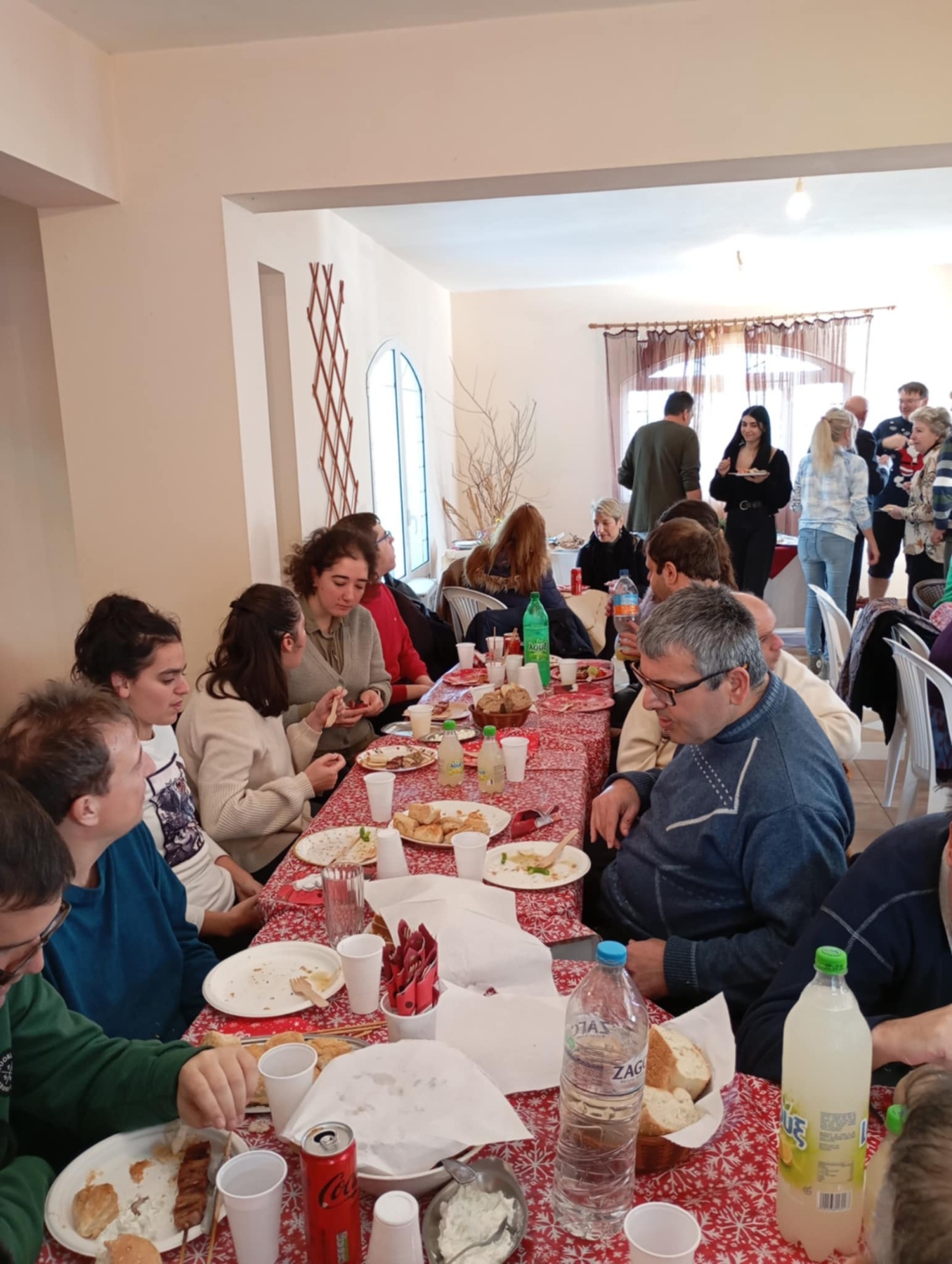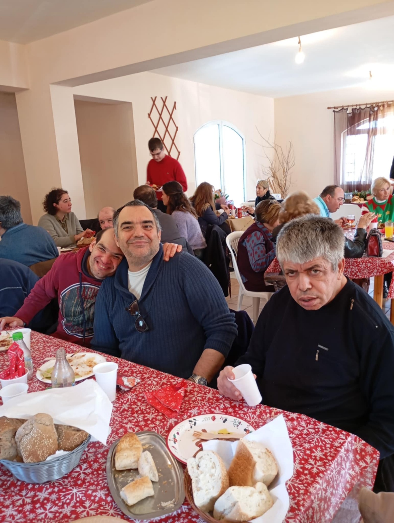 Οι ωφελούμενοι του ΚΔΗΦ απόλαυσαν ιδιαίτερα το γεύμα, ένιωσαν αποδοχή, φροντίδα και γιορτινή θαλπωρή, και συμμετείχαν ενεργά σε μια εμπειρία που ανέδειξε τη σημασία της συνύπαρξης, της αλληλεγγύης και της κοινωνικής προσφοράς. Η όμορφη αυτή συνάντηση κορυφώθηκε με χριστουγεννιάτικα τραγούδια, τα οποία τραγούδησαν οι ωφελούμενοι μαζί με τους εκπαιδευτές τους και τον εθελοντή μουσικό του ΚΔΗΦ, Γιώργο Ταραζή, χαρίζοντας σε όλους στιγμές συγκίνησης και χαράς.